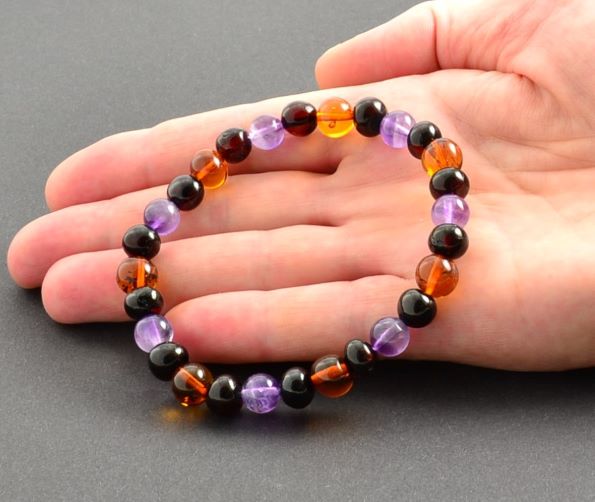Amber Healing Bracelet Made of Baltic Amber and Amethyst