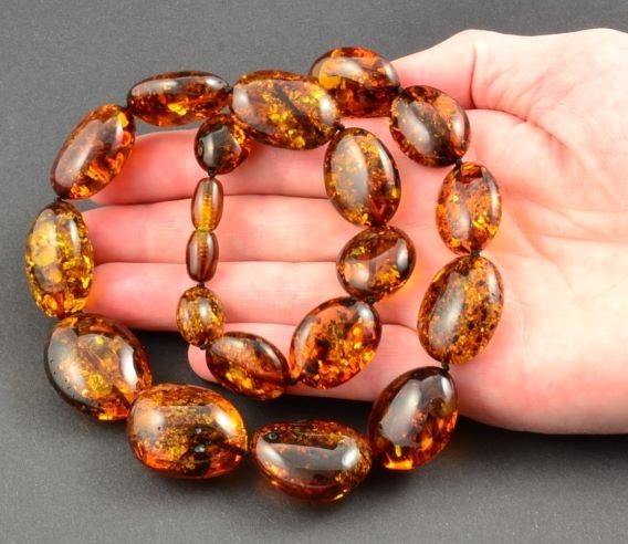 Large Amber Necklace Made of Oval Cognac Color Amber