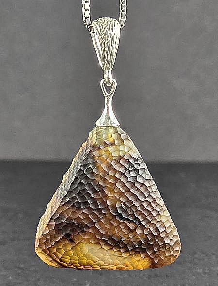 Meteorite Triangle Amber Pendant Carved Cloudy Baltic Amber