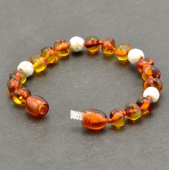 Children's Amber Bracelet Anklet Made of Amber and White Turquoise