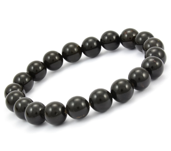 Black Amber Bracelet Made of Larger 12 mm Amber Beads