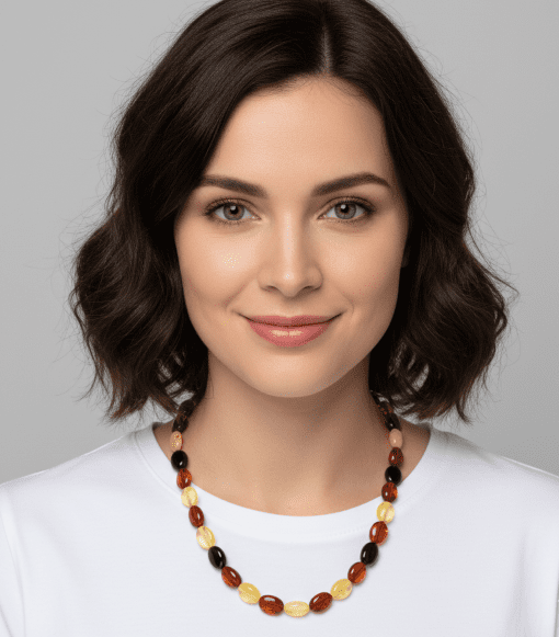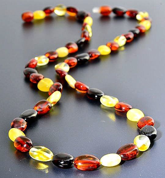 Four Colors Amber Healing Necklace Made of Bean Shape Amber Beads