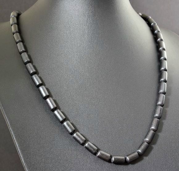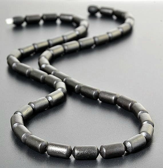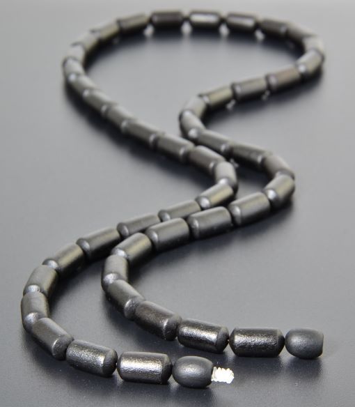 Black Men's Amber Necklace Made of Barrel Shaped Raw Amber