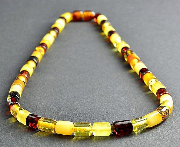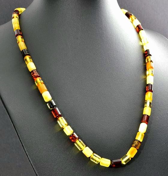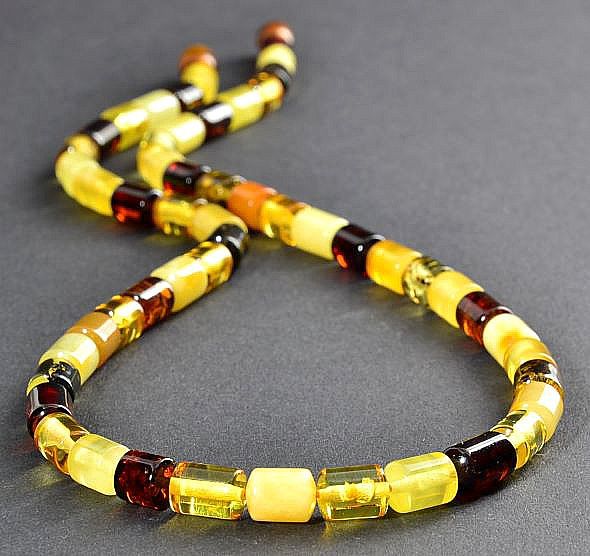 Men's Amber Necklace Made of Tube Shape Multicolor Amber. Unisex.