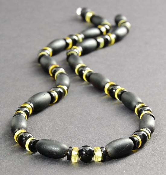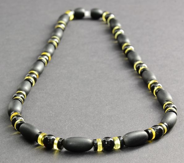 Men's Amber Necklace Made of Black and Lemon Colors Amber. Unisex.