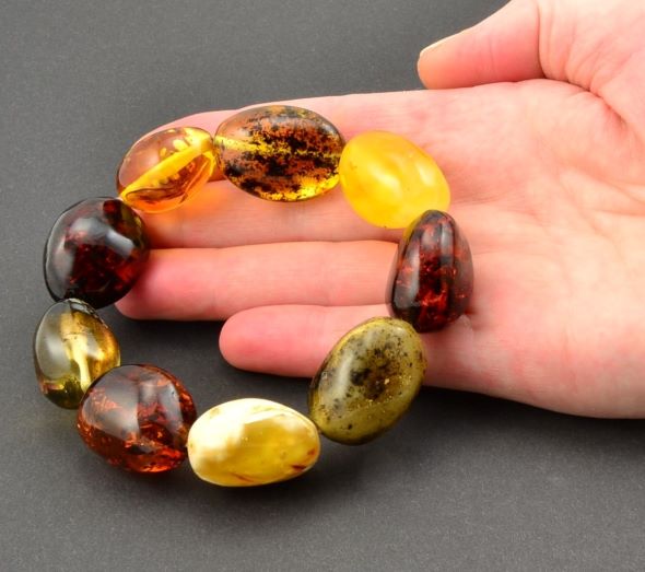 Large Amber Bracelet Made of Oval Shape Multicolor Amber