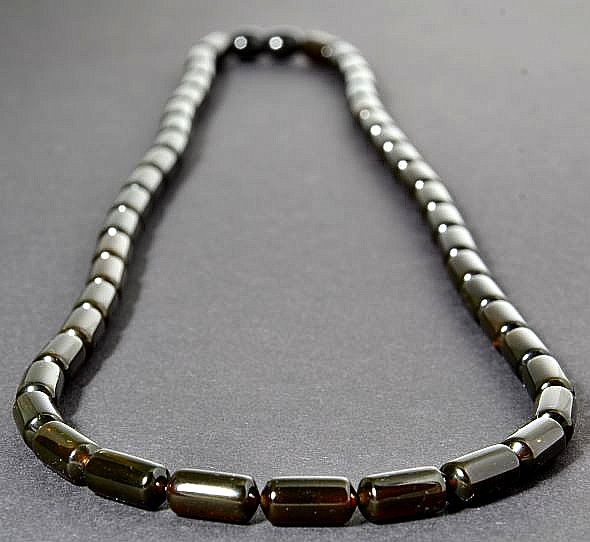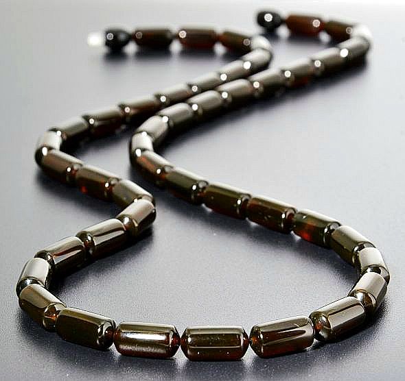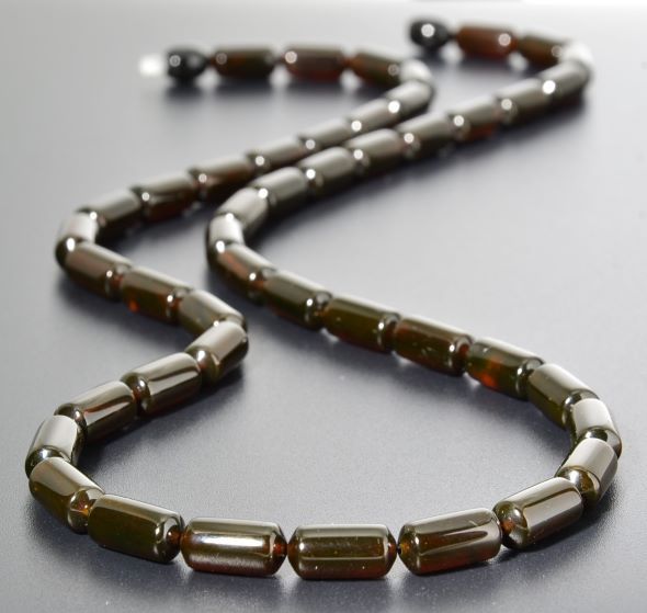 Mens Amber Necklace Made of Tube Shaped Dark Cherry Color Amber